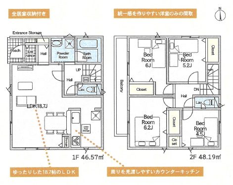 | 設備 | 温水洗浄便座、トイレ2ヶ所、浴室乾燥機、システムキッチン、カウンターキッチン、浄水器、床下収納、プロパンガス、複層ガラス、モニタ付インターホン、ディンプルキー、[火災警報器等設置済] | ||