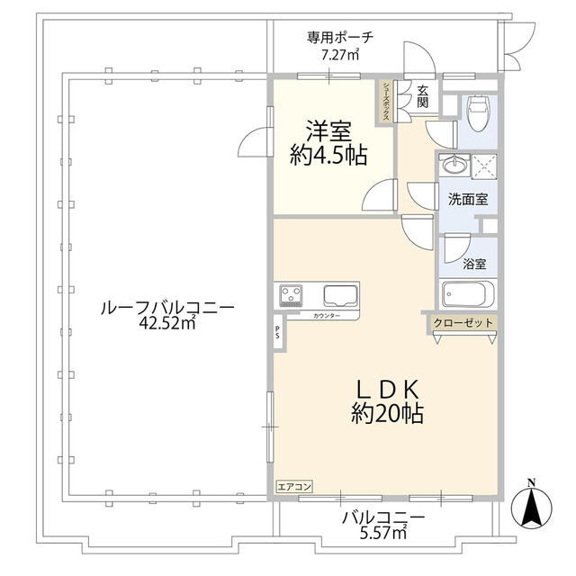 | 間取り | 1LDK | 間取り内訳 | 洋4.5畳×1室 LDK20畳×1室 |