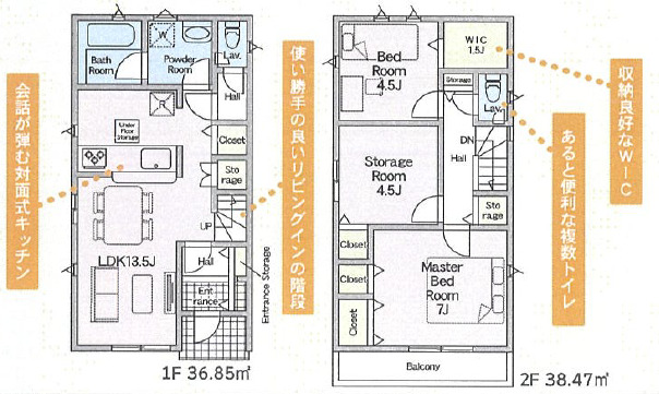 | 設備 | 温水洗浄便座、トイレ2ヶ所、浴室乾燥機、システムキッチン、カウンターキッチン、浄水器、ウォークインクローゼット、床下収納、洗髪洗面化粧台、電気、都市ガス、上水道、下水道、複層ガラス、モニタ付インターホン、ディンプルキー、建設住宅性能評価取得(予定含む)[火災警報器等設置済] | ||